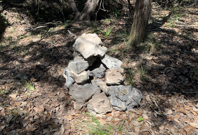 Beyond Engelbrecht Inn & Tavern and the Lost Boys is a crude trail leading westward toward the Gully of the Wild Things. There are some painted rocks along the trail. I don’t know who painted them or what purpose they once served, but they are guide stones now. If you come across a collection of animal bones on a crude shelf wedged in the branches of a tree you are getting close.