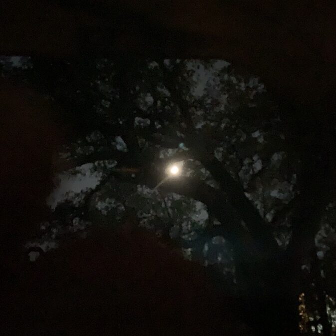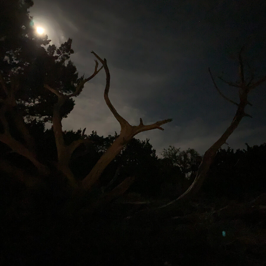 The tops of the trees, normally frosted with light, were dark. Without light constricting my pupils, the white limestone trails and silvery trunks slowly emerged from the blackness. Their colors were those of Luna. Silver and blue and full of mischief.