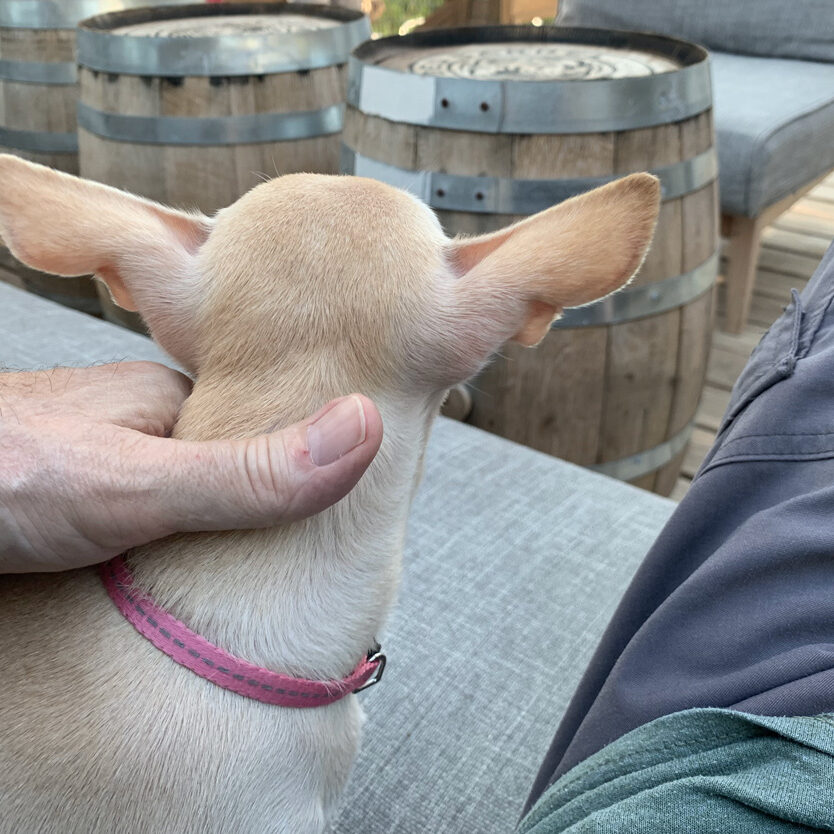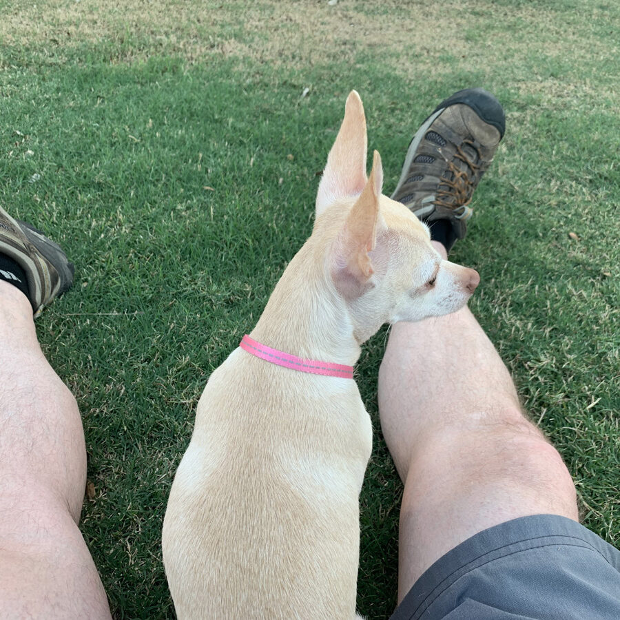 So who is Cheech anyway? She is a chihuahua. Her ancestors were apex predators on the frozen tundra until forty generations of fell human engineering produced a dog whose primary instinct is snuggling. Cheech was left here in La Mancha a year ago and no one ever came back for her. The regulars at the Fang & Feather say she is a “chill dog” because she will sit quietly in your lap for as long as you let her. A friend with a lap seems to be what Cheech needs to be happy. Cheech lives with Joe and Indigo, but she and I hang out sometimes, go for walks, and keep each other company. That’s how I would describe our friendship. And I don’t understand why people at the Fang & Feather keep asking if I’ve finally given in and taken her home to live with me. Cheech and I don’t need your labels. We don’t need to know who owns whom. We’re doing just fine.