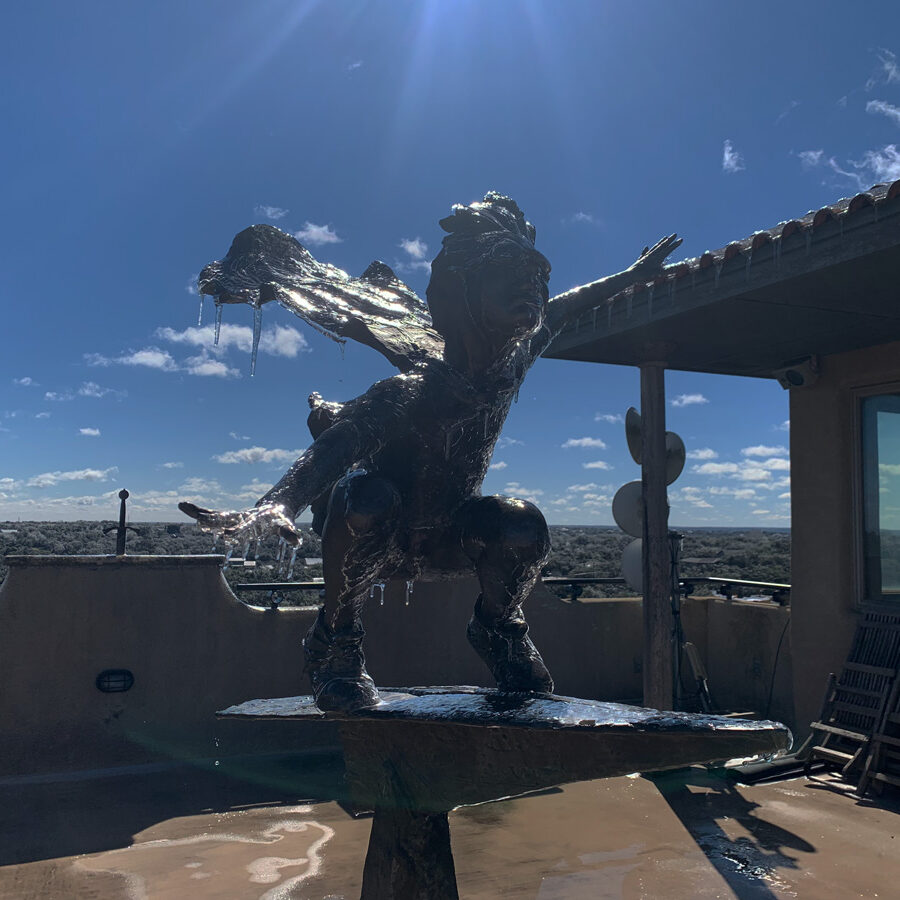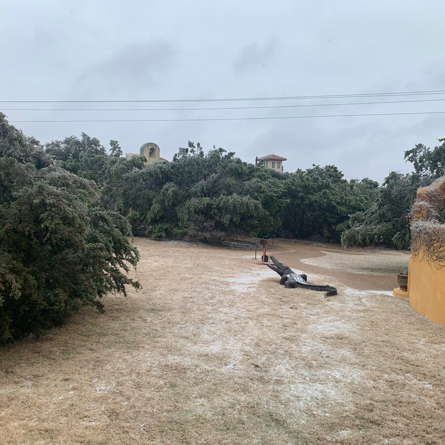 Roxi works on the landscaping in La Mancha. I met her months ago and we talk sometimes when I come across her and her dog Elijah working in the flower beds. But I never really saw Roxi until the big freeze.